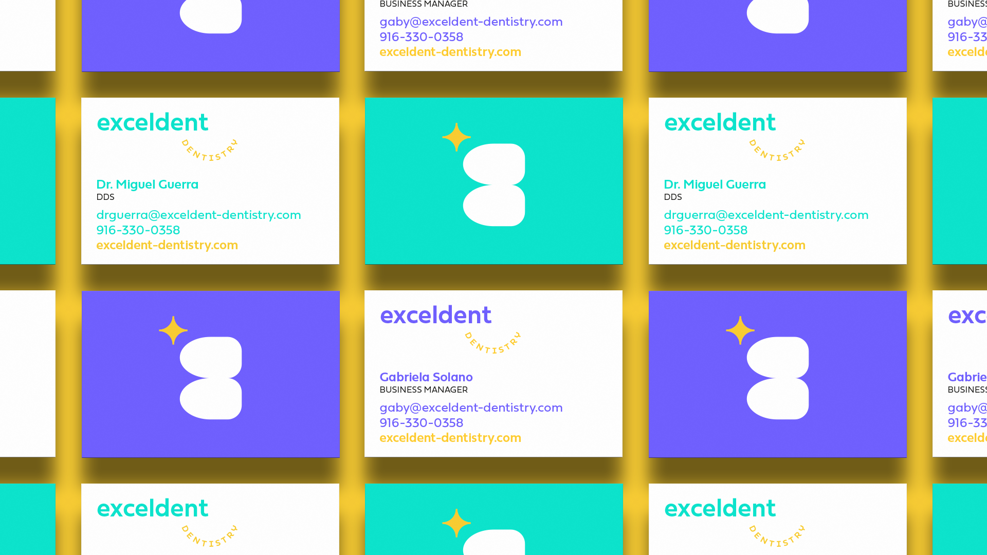 Diseño de identidad, naming, sitio web y programación para clínica dental Exceldent ubicado en Sacramento, California.